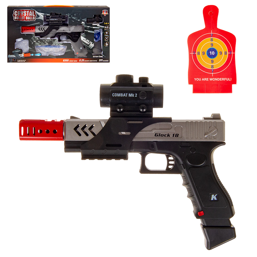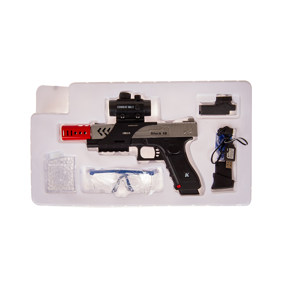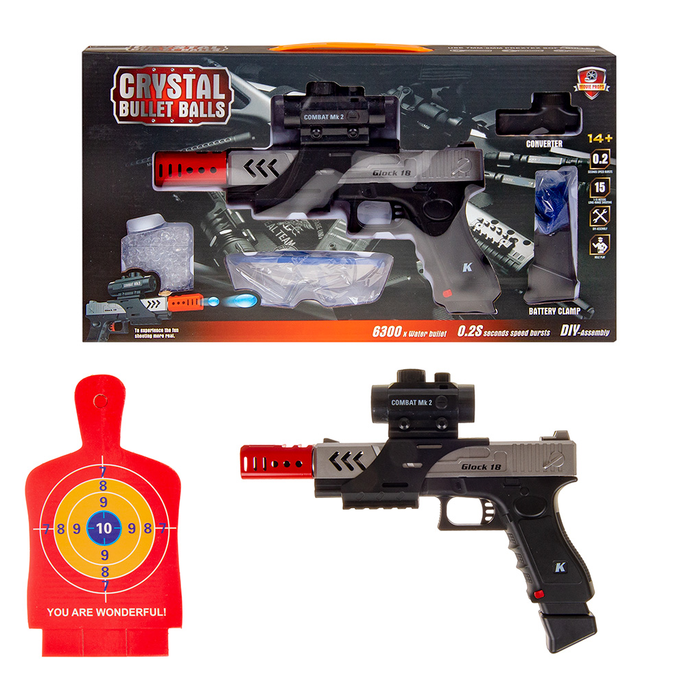 Детское оружие, - это великолепный подарок для каждого мальчика, который любит играть в войнушки. Маленькие шарики из набора нужно напитать водой. В результате пульки будут состоять на 99% из воды. При попадании в цель шарики рассыпаются и не наносят травм детям. Дальность стрельбы - 10 метров. С этим оружием дети потренируются в меткости и ловкости. Не требует ручного взвода. Стреляет автоматически. Питание осуществляется с помощью аккумулятора. В комплекте аккумулятор, зарядное устройство с разъёмом USB.