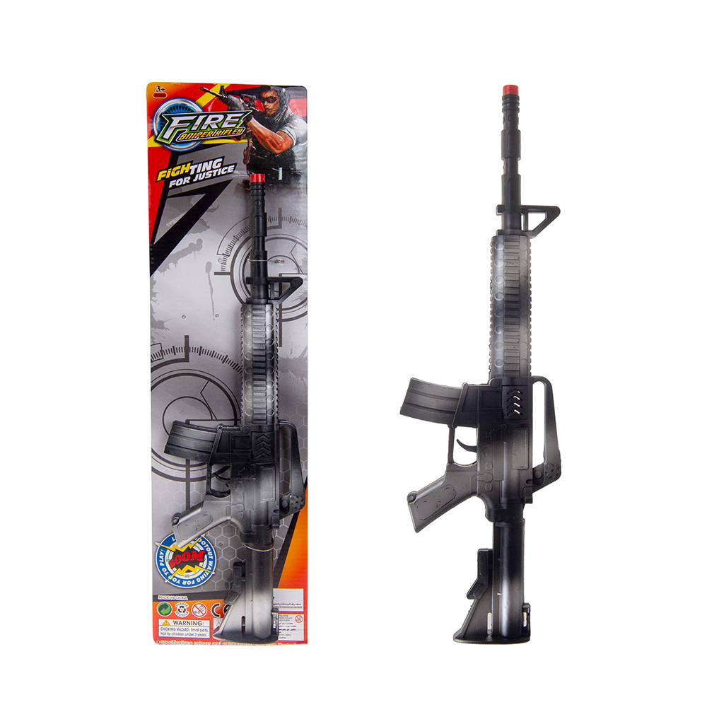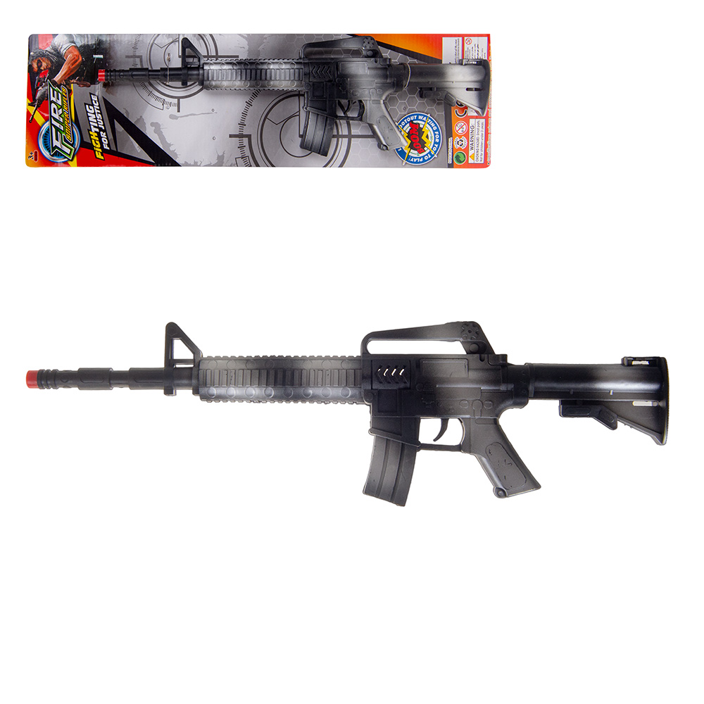 Автомат механический со звуковыми эффектами. При нажатии на курок воспроизводится треск, имитирующий выстрелы.
