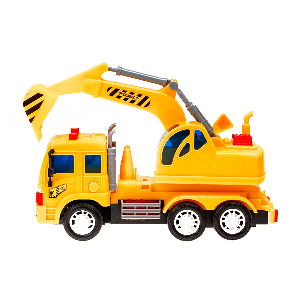 Машинка мгновенно реагирует на сигналы пульта управления, поэтому управлять будет очень весело и интересно. Машина едет вперед, назад, разворачивается, лампочки мерцают, раздается характерный звук сирены. Такая игрушка будет воспитывать качества настоящего мужчины, побуждать к физической активности, сюжетно-ролевых игр, развивать моторику рук, даст понимание, как устроен экскаватор, принцип его действия. Длина машины 25 см, в набор входит 2 АА и 3 ААА батарейки, питающие машину и пульт радио управления.