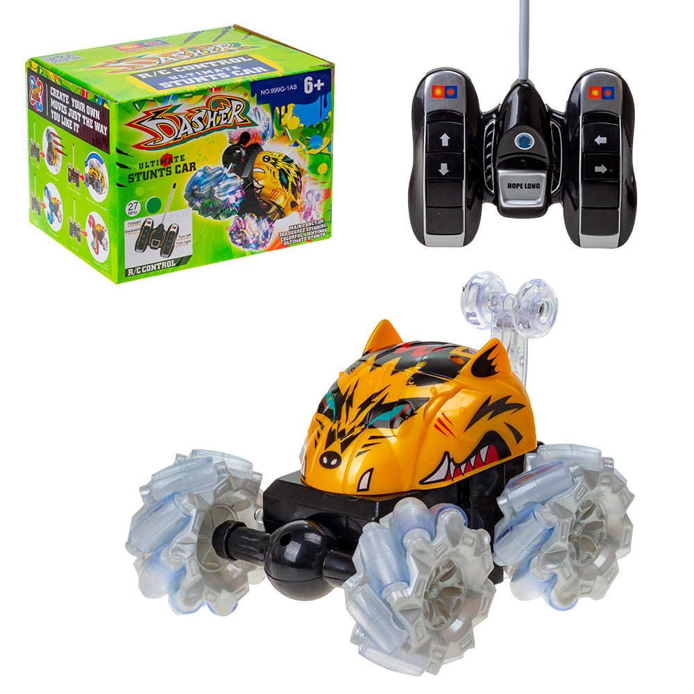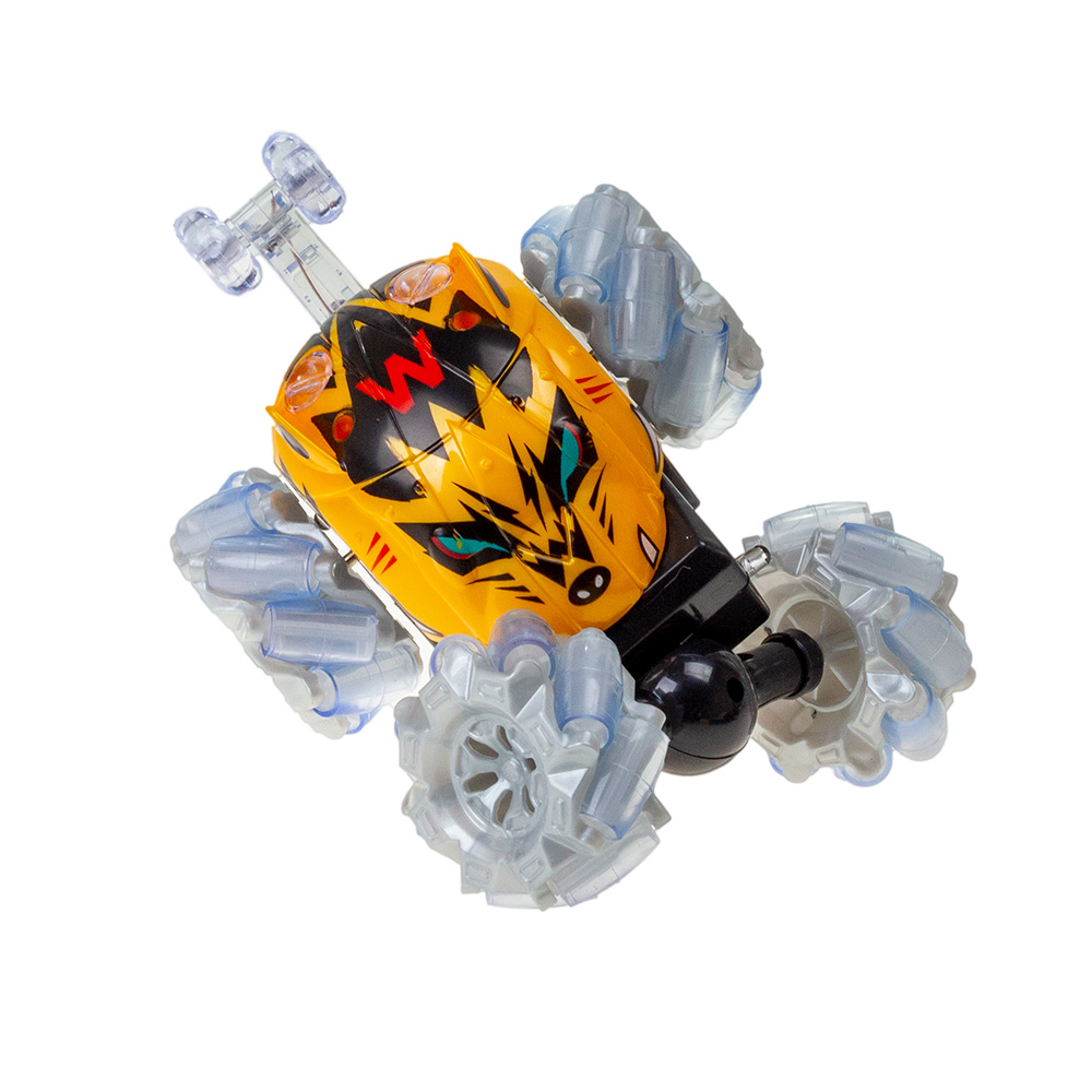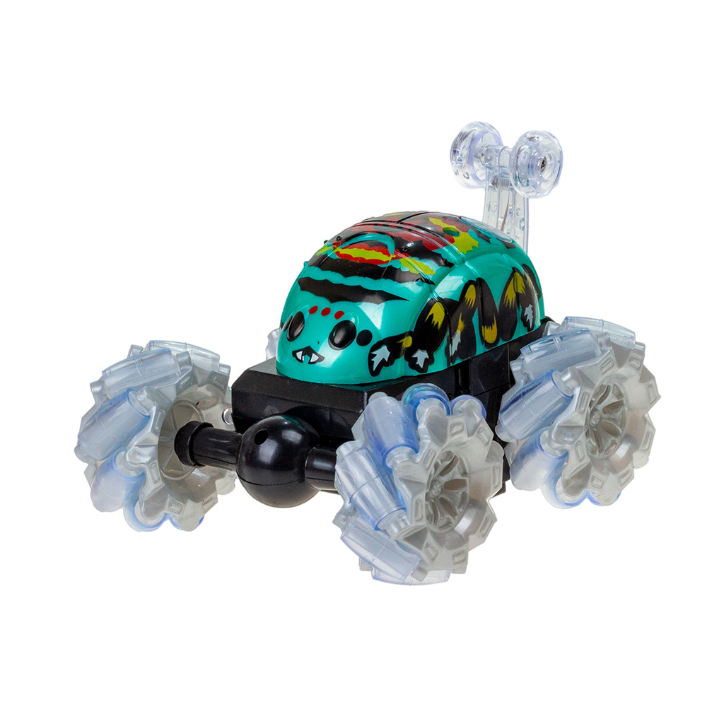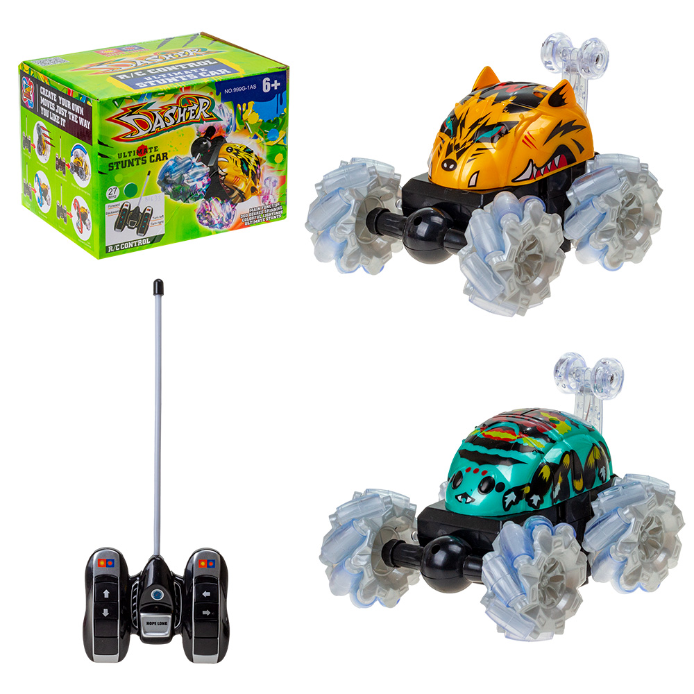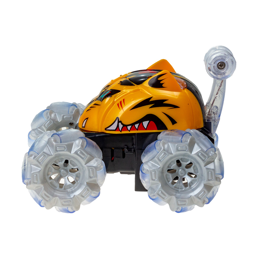 Светящаяся Трюковая радиоуправление машинка перевертыш умеет выполнять интересные трюки - передняя ось машинки вращается на 360 градусов. Также радиоуправление машинка может ездить на спине, благодаря дополнительным колесикам.Питание осуществляется с помощью 4 батареек типа АА (пальчиковых), которые приобретаются отдельно. В ассортименте 2 цвета.