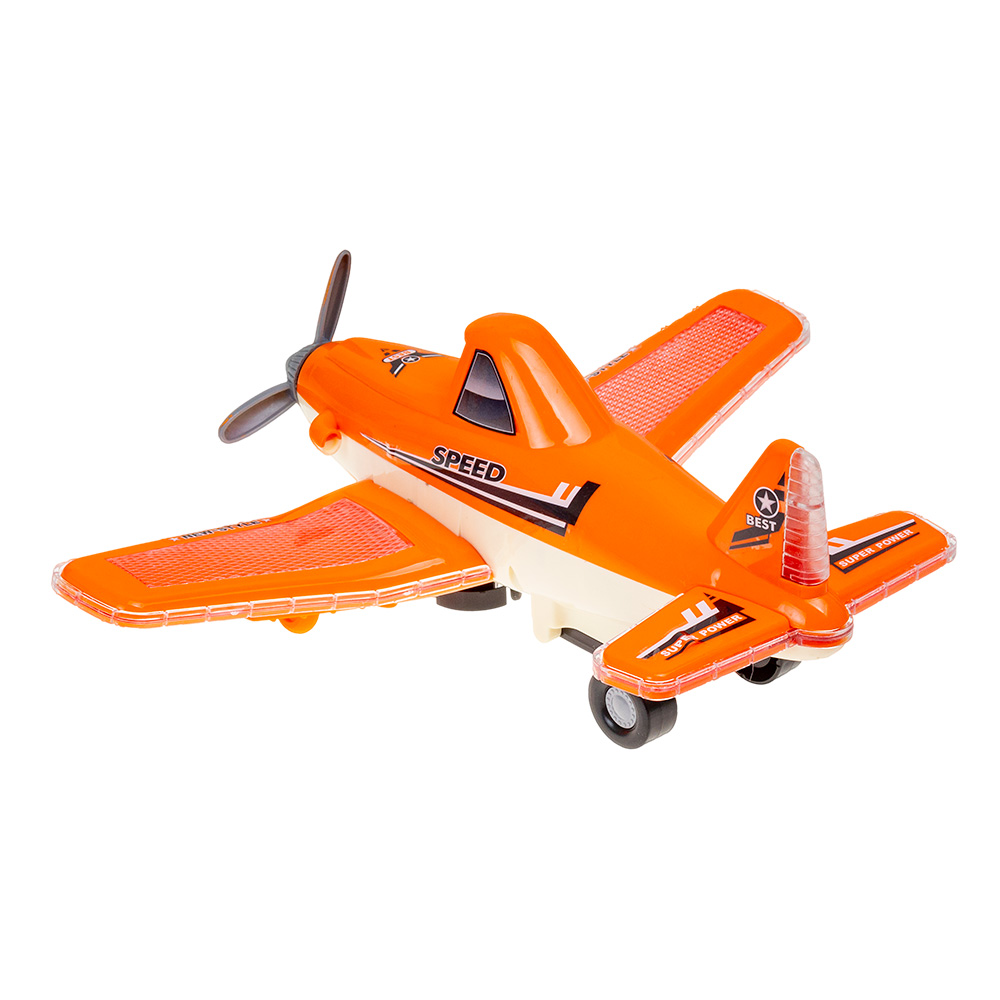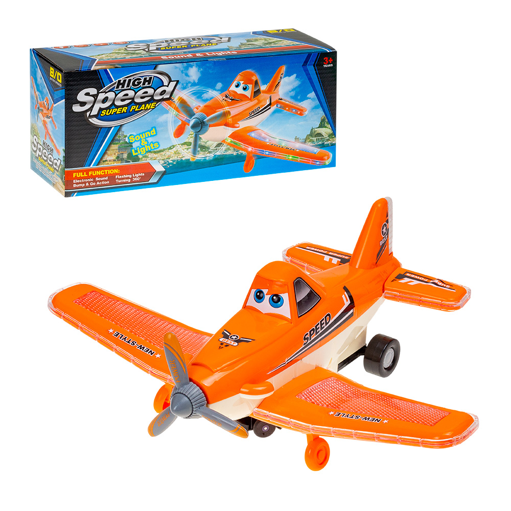 Самолет со световыми и звуковыми эффектами.Питание осуществляется с помощью 3 батареек типа АА (пальчиковых), которые приобретаются отдельно