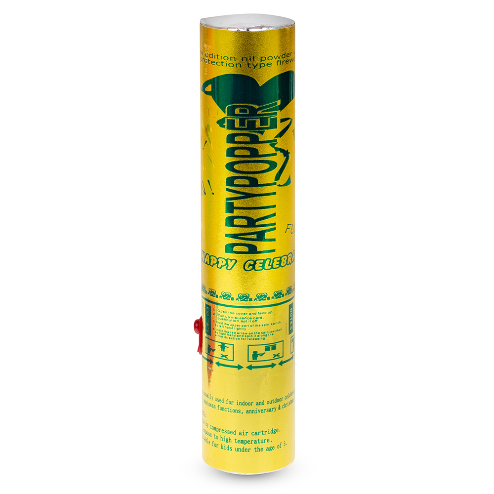 Хлопушка абсолютно безопасна в эксплуатации, подходит для применения в помещении и на улице. Оригинальная форма изделия и яркие надписи сделают ваш праздник незабываемым