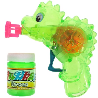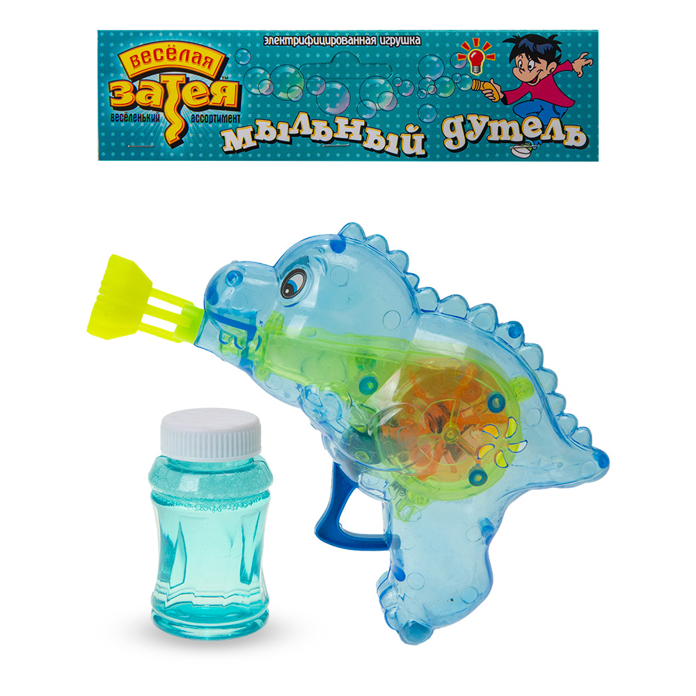 Игрушка для пускания мыльных пузырей: пистолет в форме Динозаврика с подсветкой. Инерционный механизм - батарейки НЕ требуются! Прос то опустите носик Динозаврика в мыльный раствор, и мыльные пузыри получатся одним нажатием на кнопку! В наборе: пластиковый пистолет , баночка с мыльным раствором.